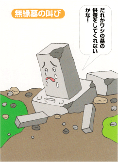 無縁墓(むえんばか)とは、供養する者がいなくなり、荒れたまま放置されているお墓のことです。お墓参りにいった折などに、近くをながめていると、よく手入れされ、植え込みなども美しく整備された墓地の一画に苔むし、周辺は雑草に覆われ、ときには半ば倒れかけているようなお墓が目に入るでしょう。このようなお墓を目にしたら、ためしに耳をすましてみてください。